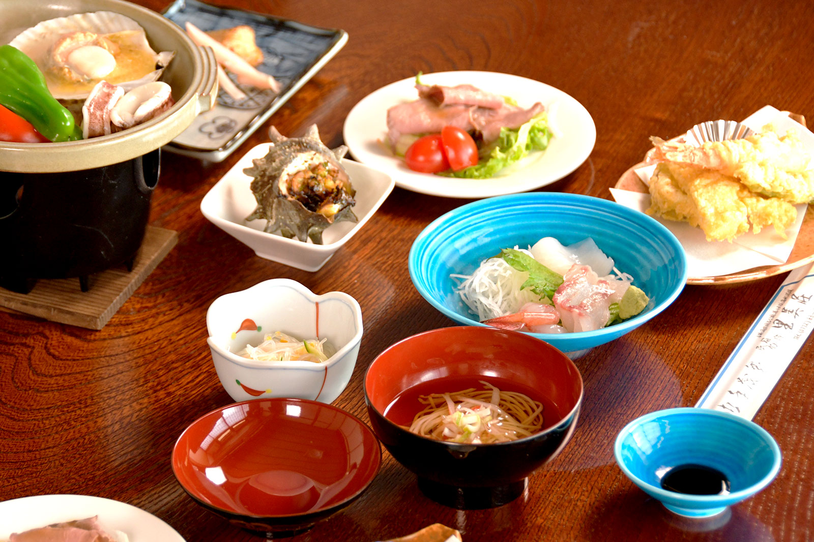 里美荘の漁師料理は、日本海と久美浜湾からとれる海の幸から作られています。毎日違った新鮮食材を使った料理は、最高の一品です。